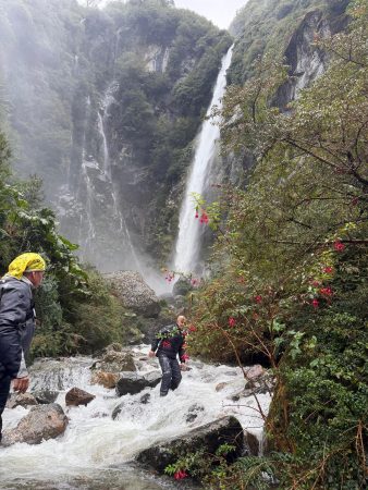 En algunos puntos, el agua parece surgir directamente del cielo, descendiendo cientos de metros por la pared de la montaña.